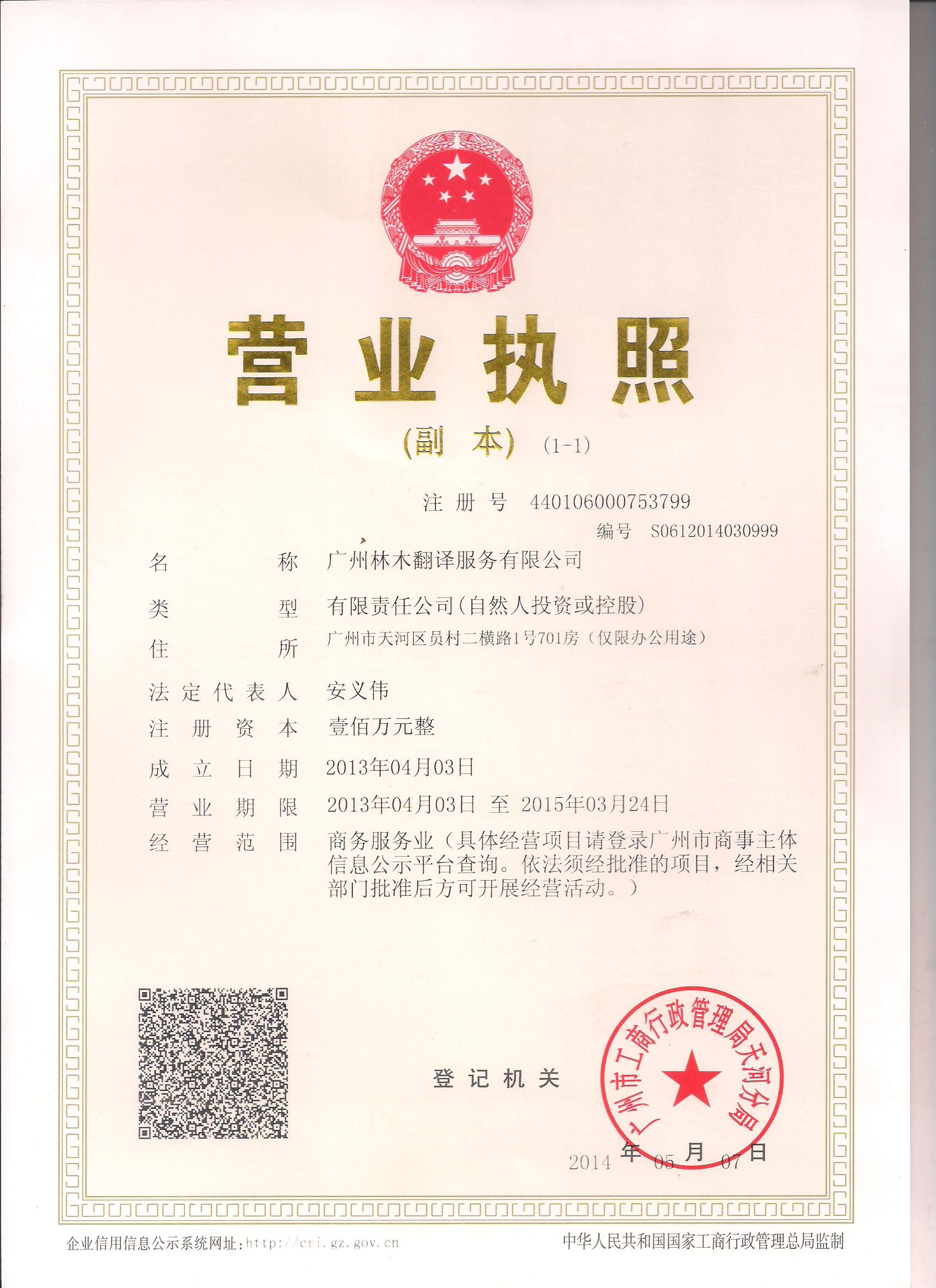 荣誉资质:林木翻译营业执照 添加时间:2014/10/24 13:18:55