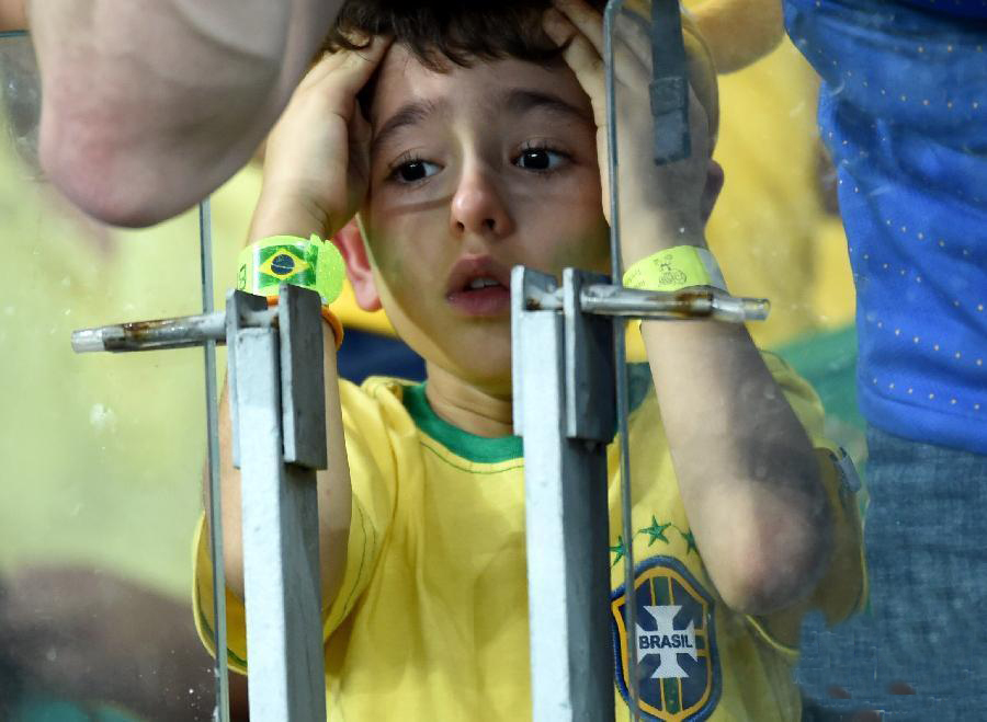 对于这个足球王国来说,悲伤的不只是输给德国,而是德国以7:1大比分狂屠巴西。大卫路易斯不知所措,大卫路易斯痛哭流涕,奥斯卡掩面痛哭,塞萨尔落寞离场,巴西众将脸上写满不甘,巴西球迷难掩悲痛,他们的伤痛无法抚慰,对于他们来说,这些伤痛将永远伴随,即使巴西再次夺冠,一雪耻辱,也仍不能散去。巴西在自己的家门前,告别了世界杯梦!